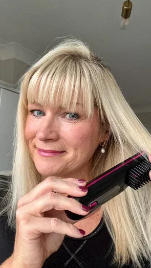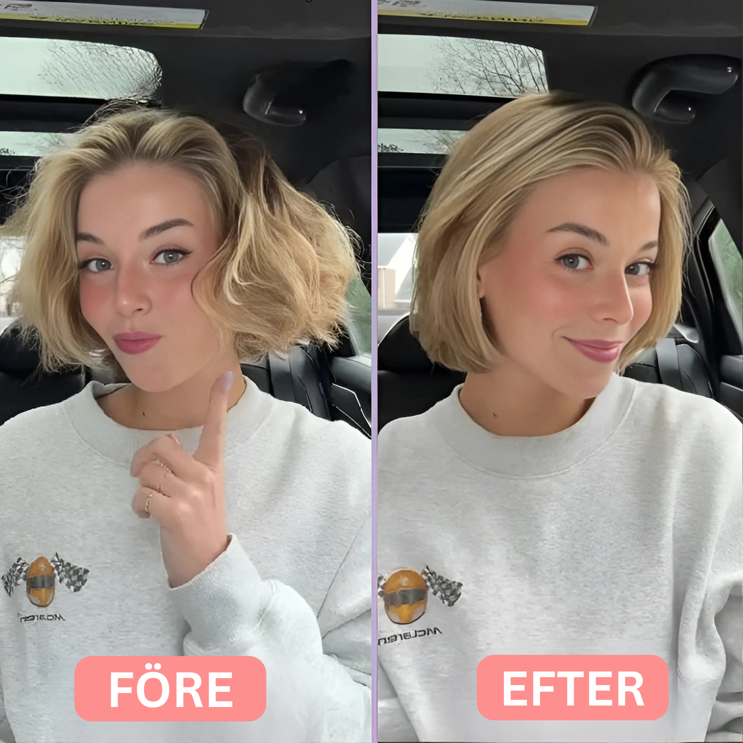 Emilias resultat talar för sig själv – före och efter Glowera Pro™! Bara några minuters användning i bilen gav henne ett slätt, snyggt hår inför jobbet.